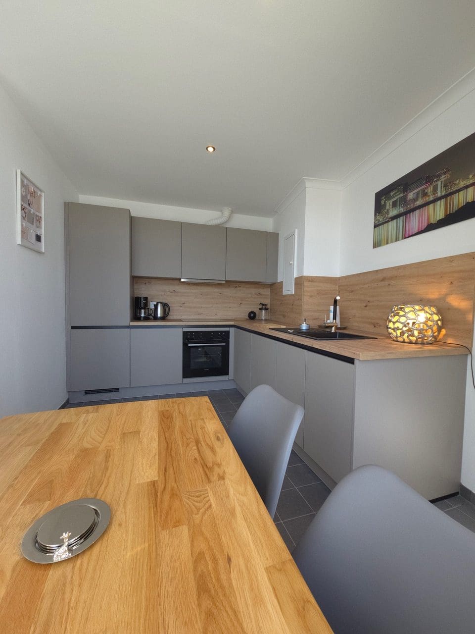 Die voll ausgestattete Küche lässt keine Wünsche offen – ob Frühstück, festliches Dinner oder gemütliches Beisammensein, hier finden Sie alles, was Sie brauchen.
