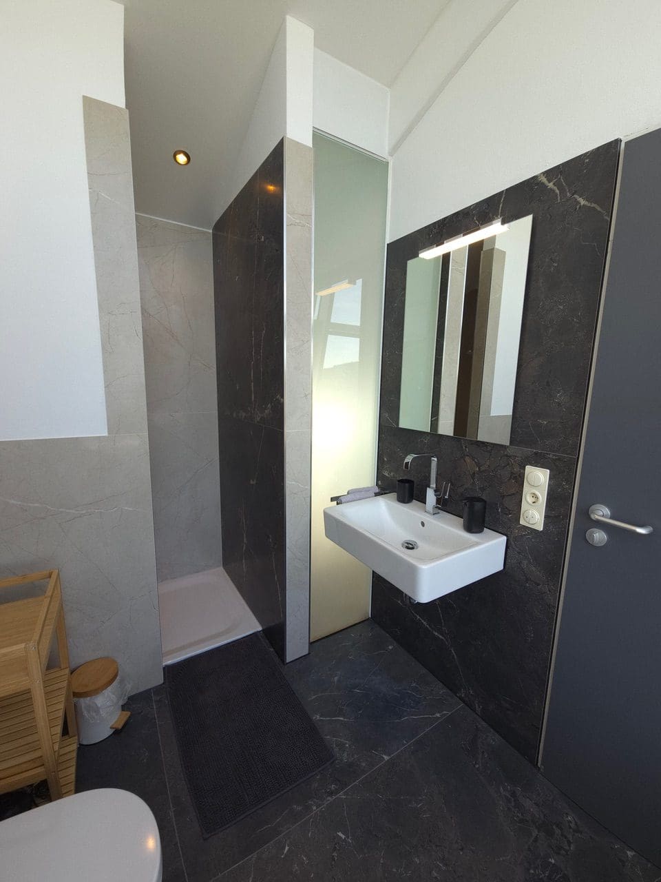 Das moderne Badezimmer überzeugt durch hochwertige Ausstattung und ein stilvolles Ambiente – ideal, um sich nach einem erlebnisreichen Tag zu entspannen.